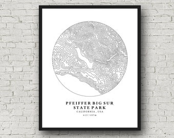 Pfeiffer Big Sur Topographic Map, Big Sur California Map, Big Sur