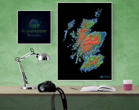 Elevation Map of Scotland high Resolution Digital Print, Map Print
