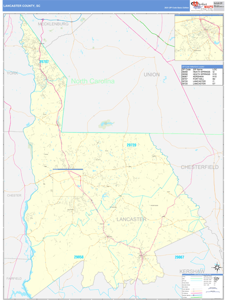 Lancaster County, SC Zip Code Map Premium MarketMAPS