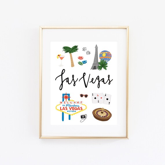 Illustrated Las Vegas Art Print, Cute Las Vegas Map, Modern Las