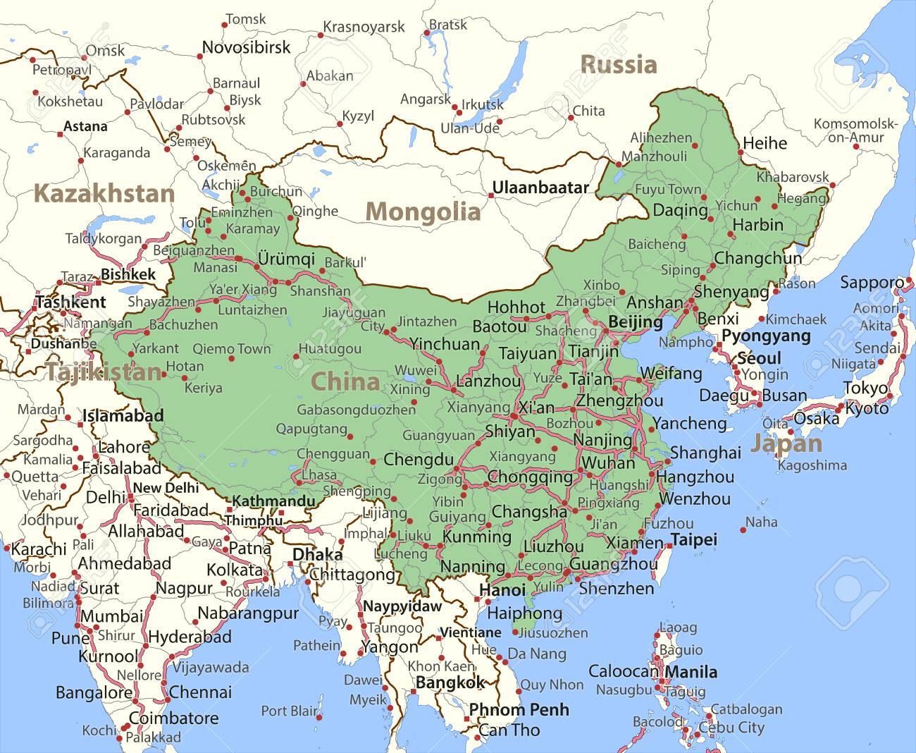 China Country Map With City Name Labels Stock Vector | Adobe Stock